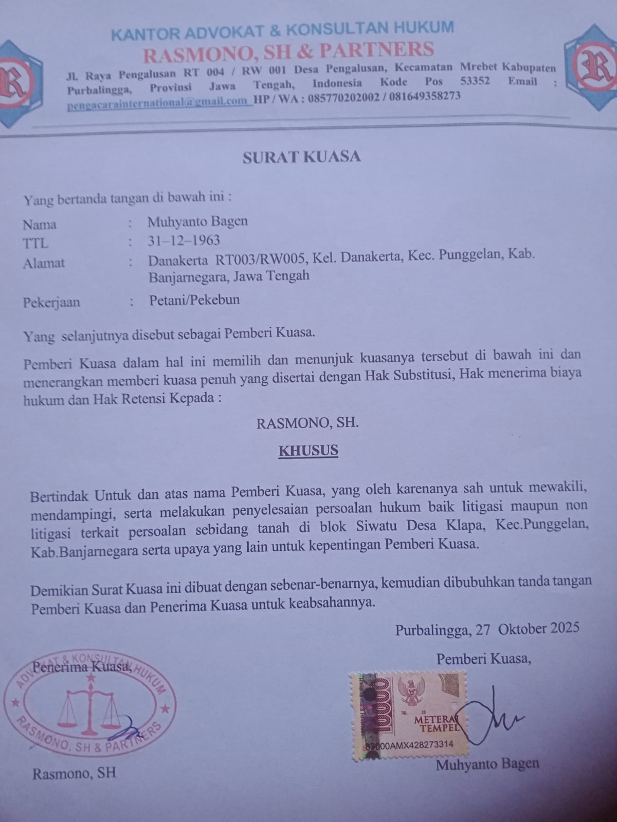 Banjarnegara, Hot News Investigasi | 28 Desember 2025 — Sengketa tanah yang menimpa Muhyanto Bagen belum menemukan titik terang. Permohonan mediasi yang diajukan kuasa hukum kepada Pemerintah Desa Klapa dilaporkan tidak mendapat tanggapan, sehingga langkah hukum kini disiapkan untuk menindaklanjuti dugaan mutasi atau balik nama tanah yang dilakukan tanpa persetujuan pemilik sah.